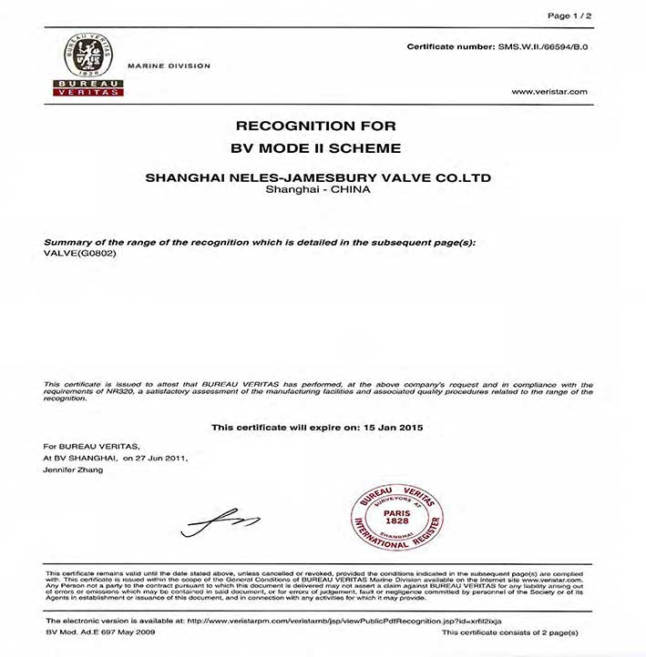 法國(guó)船級(jí)社工廠認(rèn)可證書(shū)